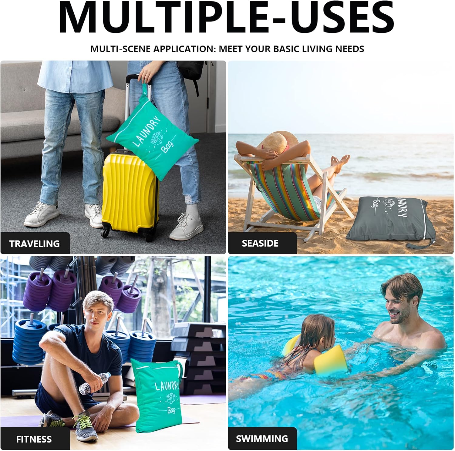 【Multifunctional Usages】This washable wet dry bag with zipper for dirty clothes is suitable for so many different uses or make thoughtful presents, you can use the travel bags for swimsuits, diapers and dirty clothes, nice for the beach, school, daycare, camping and many other uses.