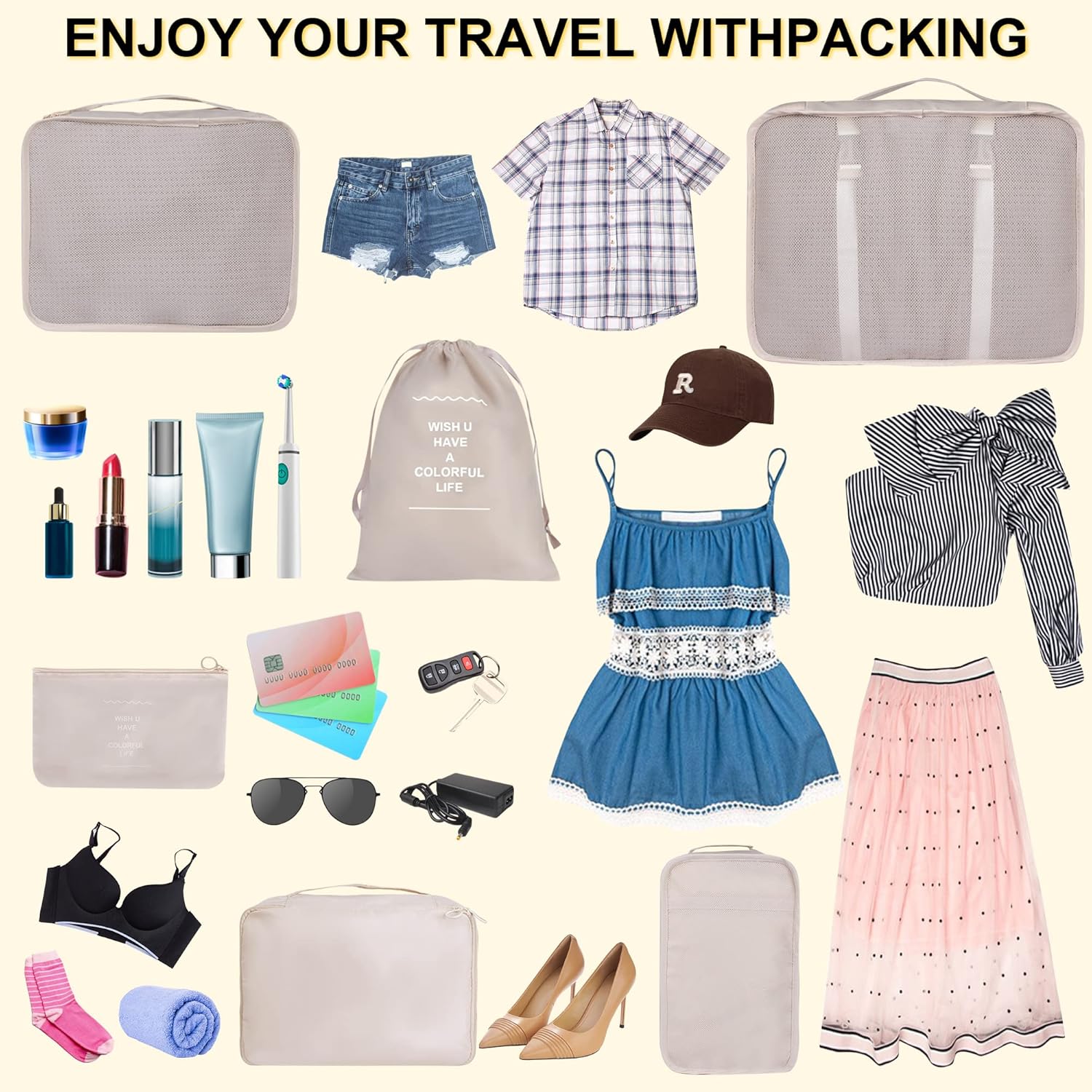 Quality Fabrics:Mesh top panel, easy to identify content and ventilate these cubes will go a long way. There are no broken zippers, no weak stitches. The smooth fabric protects your clothes from wrinkles and stains. High-performance features ensure that the packaging cube can withstand high-density wear during travel. The waterproof function protects your clothes from splashes or leaks.