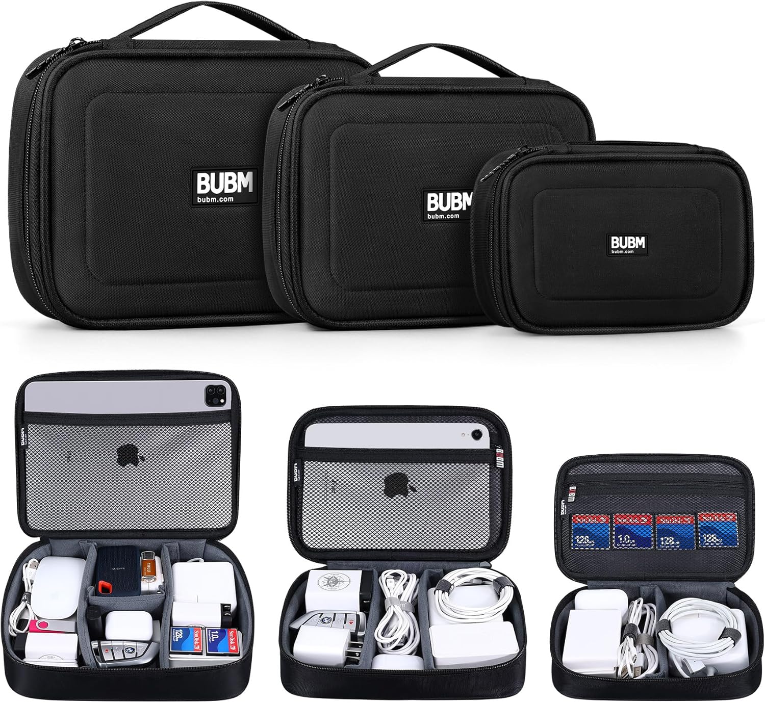BUBM Cable Organizer Bag 3pcs Electronics Travel Organizer for Hard Drives, Cables, Phone, USB, SD Card(2 Year Warranty