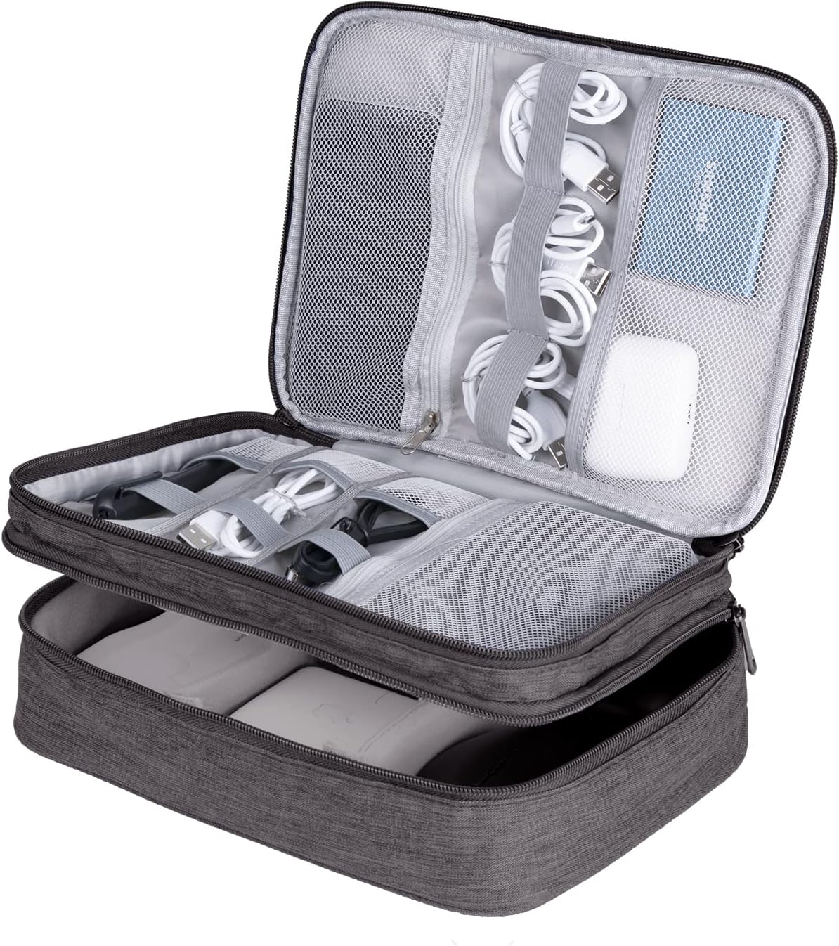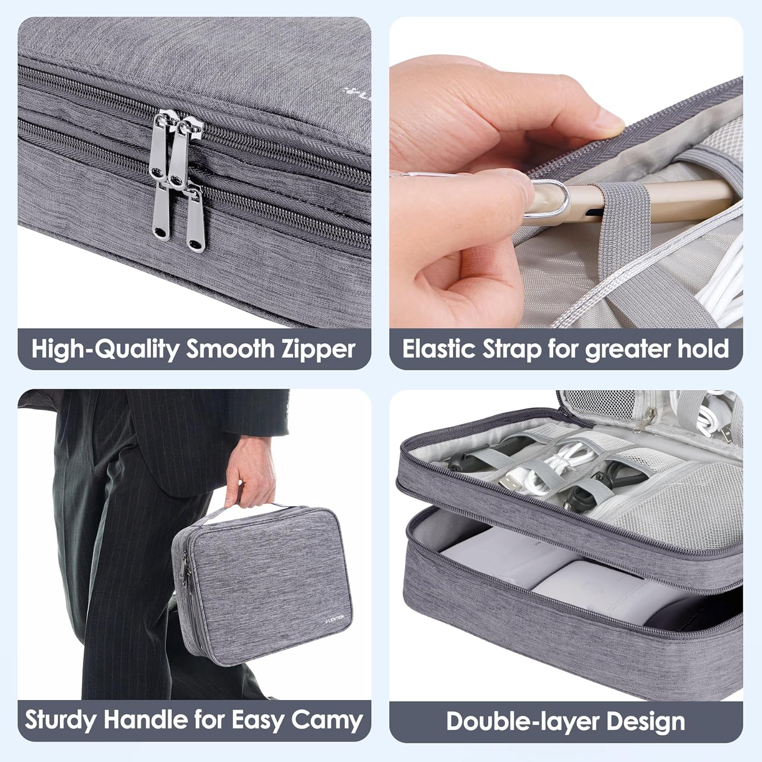 High Quality Cable Organizer Bag – Made of durable and premium water-repellent scratch-resistant nylon material and soft sponge. This travel electronics organizer is designed with multiple pockets and various size of elastic bands providing great flexibility for organizing electronics accessories such as USB Cable Cord, Charger, Power Bank, Earphone.