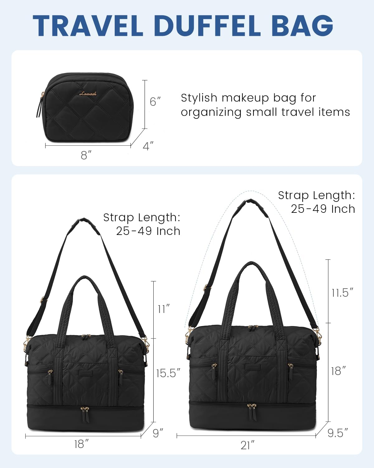 【Separate Shoe Compartment】This weekend bags for women travel features a separate shoe compartment, keeping dirty shoes away from clean clothes. This duffle bag women travel can save space in the main compartment and keeps your personal clothing items clean and tidy, adding convenience and comfort to your travels.