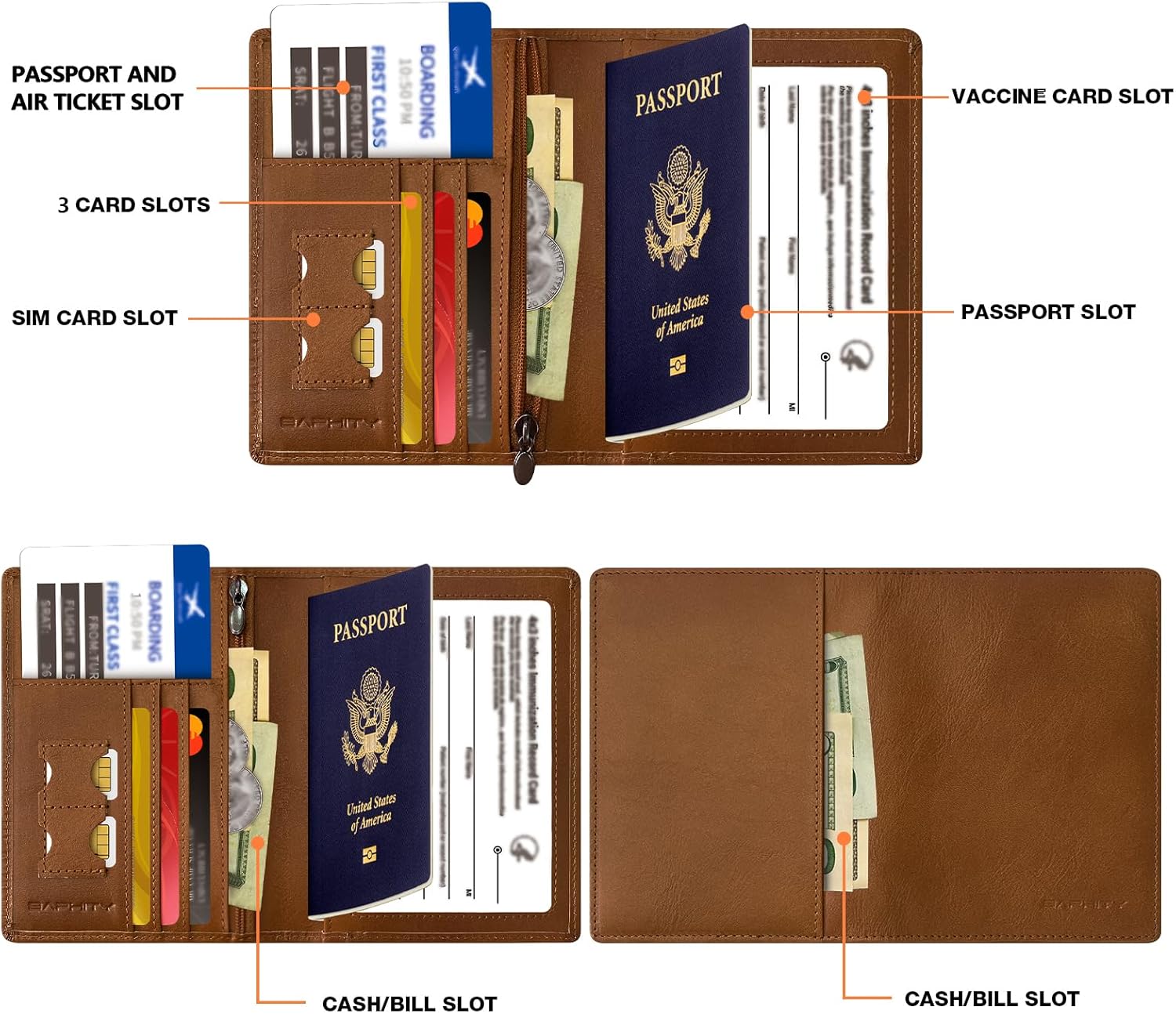 “【Smart & Organized Travel Companion】 Main compartment fits passports and boarding passes 3 quick-access card slots for credit/debit cards 2 SIM card pockets for international travel Secure zippered compartment for cash and coins 4″”×3″” clear ID window for instant verification Dedicated ticket pocket for easy access”