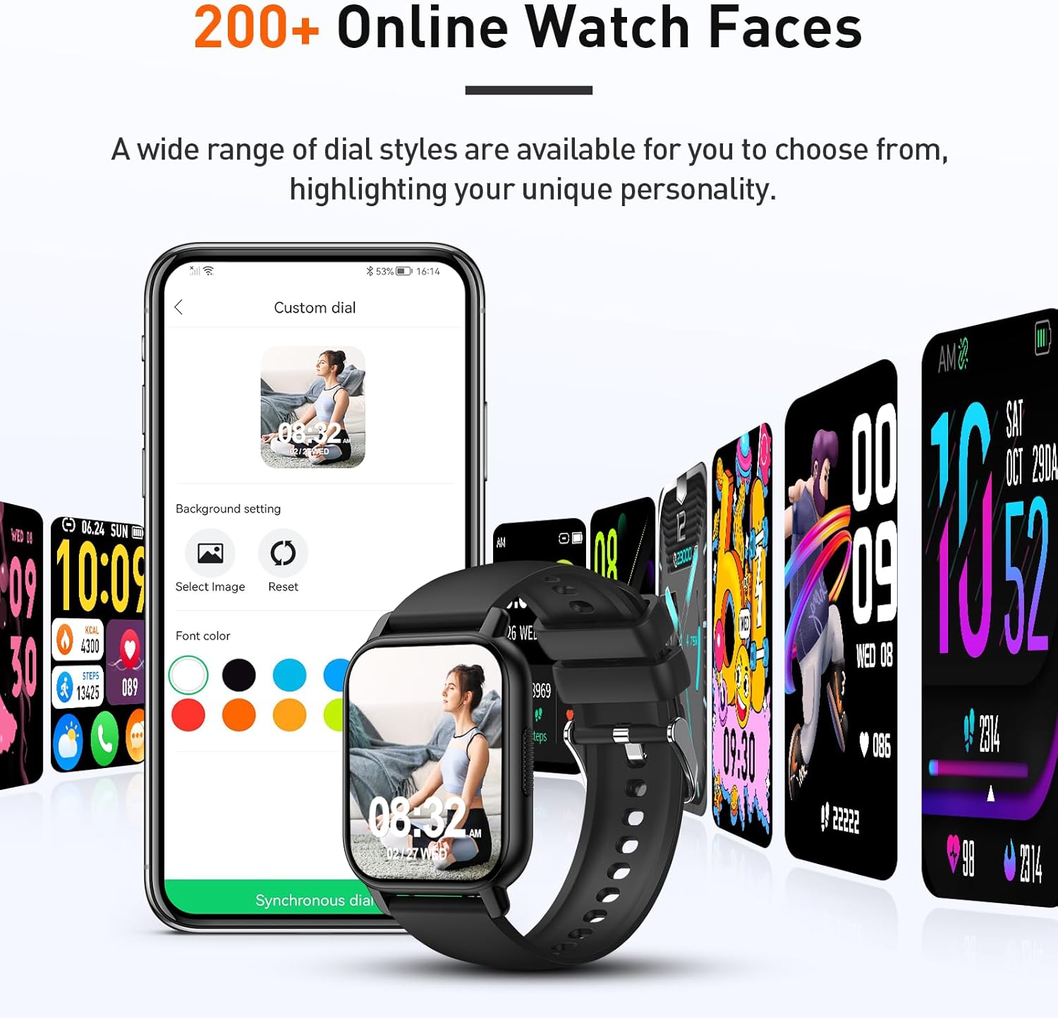 All-day Health Monitoring: The activity trackers is equipped with advanced sensors that detect real-time heart rate throughout the day to help you better understand your body condition. The sport smart watch also automatically monitors your sleep patterns during sleep (including deep sleep, light sleep and wakefulness) to fully analyze your sleep quality. Through the app, you can view a weekly health report, providing you with health advice to help you adopt a healthier lifestyle.